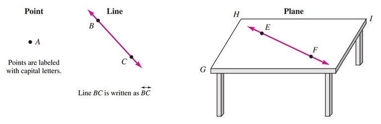 We can name a line using any two points on the line. Note how the line is written as shown in the below figure (line BC)